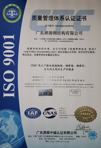 广东禅涛钢结构有限公司位于中国装备制造业和粤港澳大湾区核心区域—南海。公司始建于2008年12月24日,注册资金5100万元人民币,占地约10万平方米,专业生产800kV及以下角钢塔、500kV及以下钢管组合塔、500kV及以下变电站构架、220kV及以下钢管杆等产品,年设计产能10万吨,产品已在国内10多个省市使用,并出口到东南亚、非洲等国家地区。